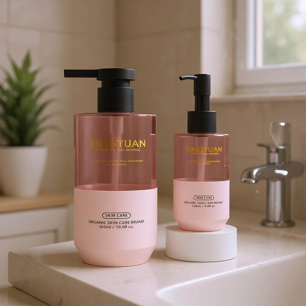 At Xingyuan Cosmetic Packaging, we specialize in crafting high-quality plastic bottles tailored for personal care and cosmetic products. Our elegant 500ml design, shown here, offers a modern aesthetic in soft pastel hues, perfect for shower gels, lotions, and more.
